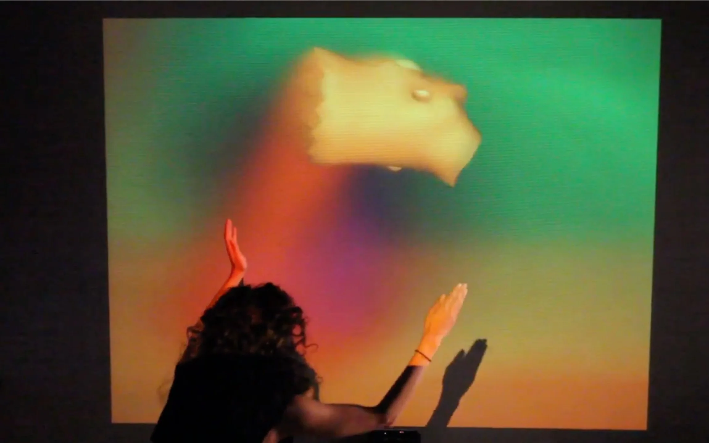 Uses synthesis-derived controls to modulate gestural input within a closed generative system, producing resolved visual form