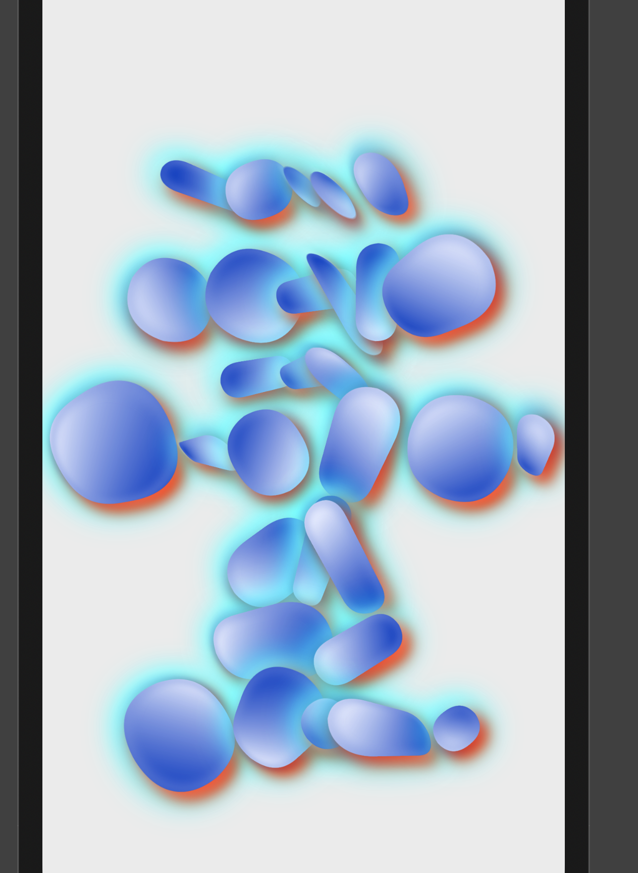The most colorful result of this practice is a generative algorithm for mangling a button grid interface into some pleasingly abstract compositions. For my app I’ve written my own colorized Neumorphic design API that has a strong OpArt feel. The perceptual nature of this illusory effect of creating form through faking shadows and highlights on solid shapes is quite fascinating and extremely painterly for a programatic design approach. Originally I became curious as to how this would play out on distorted shapes, then what it would look like to overlap shapes, vary the gradient and blur intensities, and down the rabbit hole I fell. As you can see it produces a fairly wide range of interesting aesthetics but there is much more territory to explore.